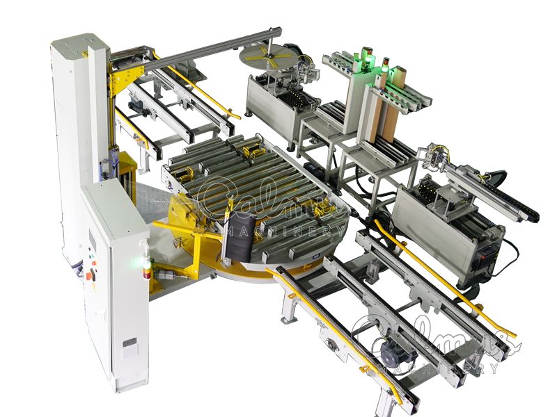 Palettenwickler | Stretchwickler mit Kantenschutzleisten-Applikatoren für Palettenladungen